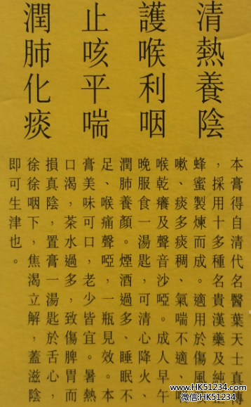 香港京都念慈庵蜜炼川贝枇杷膏功效作用说明